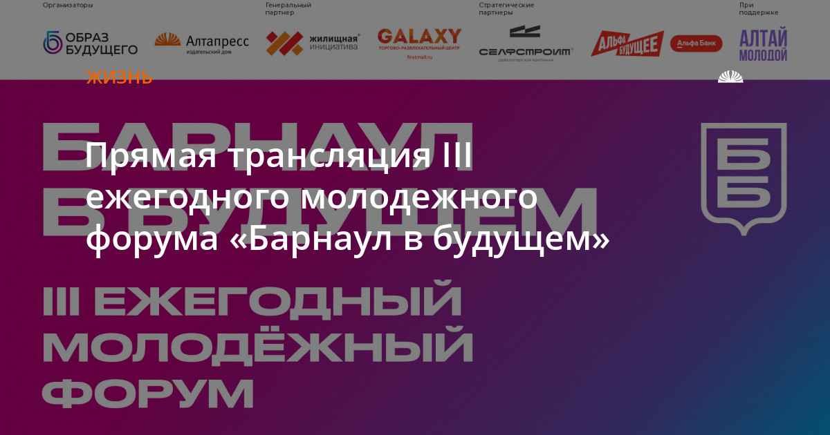 Организаторами форума выступают издательский дом «Алтапресс» и молодежный проект «Образ будущего» при поддержке Управления молодежной политики и реализации программ общественного развития Алтайского края.