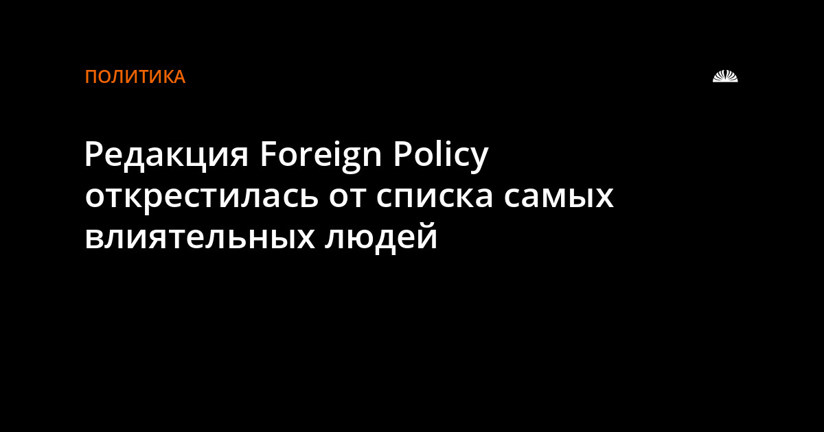 Китинг отметил, что упомянутый список не имел отношения к редакции Foreign Policy. Он был подготовлен политологом и президентом компании Eurasia Group Яном Бреммером и представлял собой лишь частное мнение автора, выраженное в его блоге на сайте журнала. В печатной версии последнего номера издания, подчеркивается в сообщении, никакого списка самых влиятельных людей планеты не было.