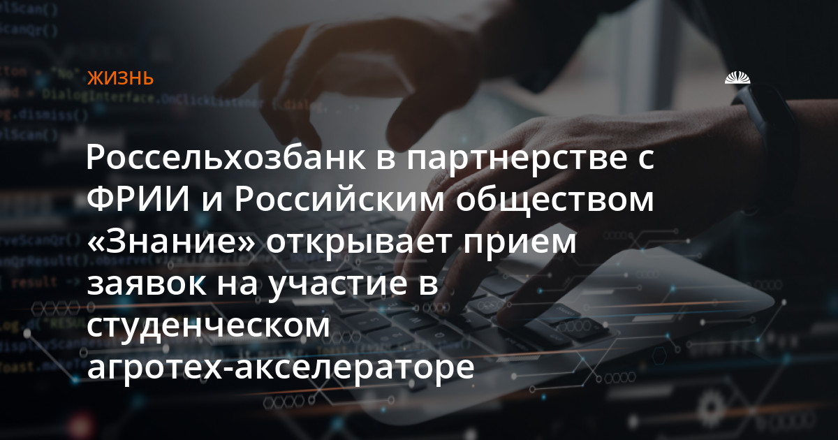 Россельхозбанк в партнерстве с ФРИИ и Российским обществом «Знание» начал прием заявок от студентов российских вузов на участие в студенческом агротех-акселераторе. Участие смогут принять студенты старших курсов бакалавриата, специалитета или магистратуры, а также аспиранты и молодые ученые, у которых есть инновационные решения для развития технологий и сервисов на платформах экосистемы «Своё» от РСХБ или идеи по запуску своего агротехнологического стартапа. В акселератор могут пройти также участники, которые обладают высокими компетенциями и мотивированы на работу в агросекторе.