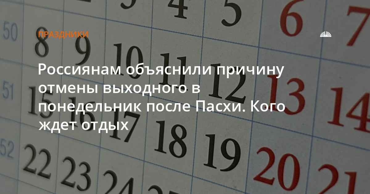 Россиянам объяснили причину отмены выходного в понедельник после Пасхи. Кого ждет отдых