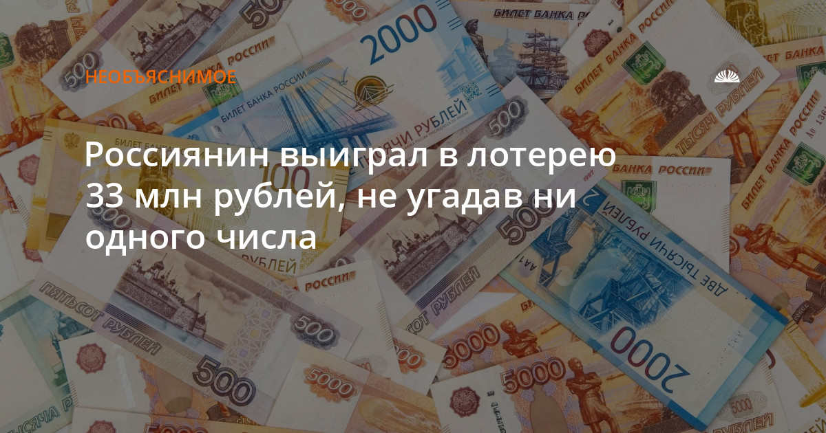 Россиянин выиграл в лотерею 33 млн рублей, не угадав ни одного числа