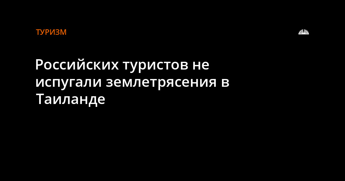 Российские туристы не стали прерывать отдых в Таиланде после серии землетрясений, которые произошли в районе Индийского океана, сообщила РИА Новости генеральный директор туристической компании "Пегас Туристик" Анна Подгорная. По ее словам, землетрясение и угроза цунами не только не испугали тех туристов, которые уже находятся на отдыхе в зоне стихийного бедствия, но и не повлияли на планы клиентов компании, которые еще только собираются отправиться в Таиланд.