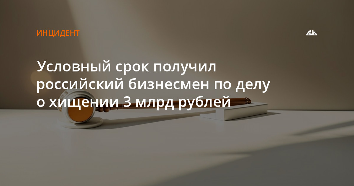 Условный срок получил российский бизнесмен по делу о хищении 3 млрд рублей