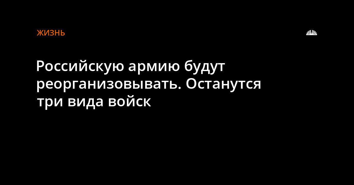 После реорганизации в российской армии останутся три вида и два рода войск. Об этом сообщает ТАСС со ссылкой на источник в Минобороны.