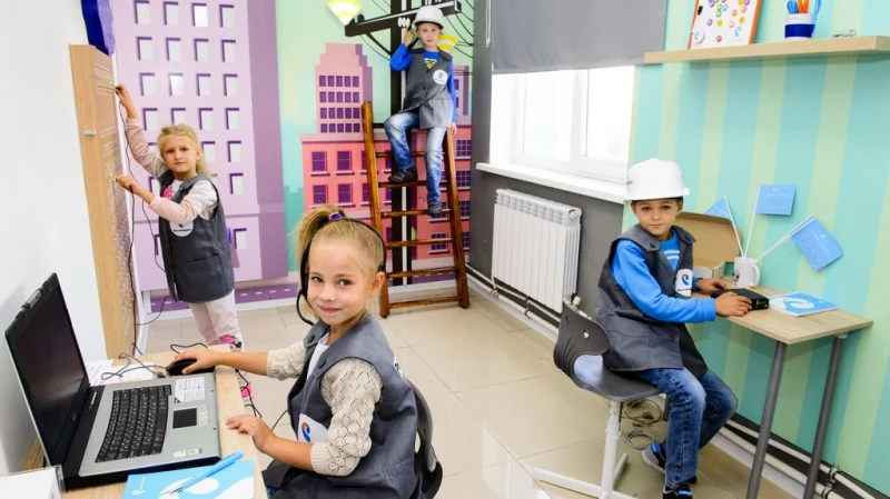 Но самое интересное ждет детей в новом "Доме связи". Внутри игровой комнаты оборудовано несколько рабочих зон. Наставник помогает одеться в фирменную спецодежду "Ростелекома" и объясняет детям, как "освоить" современные профессии связистов.