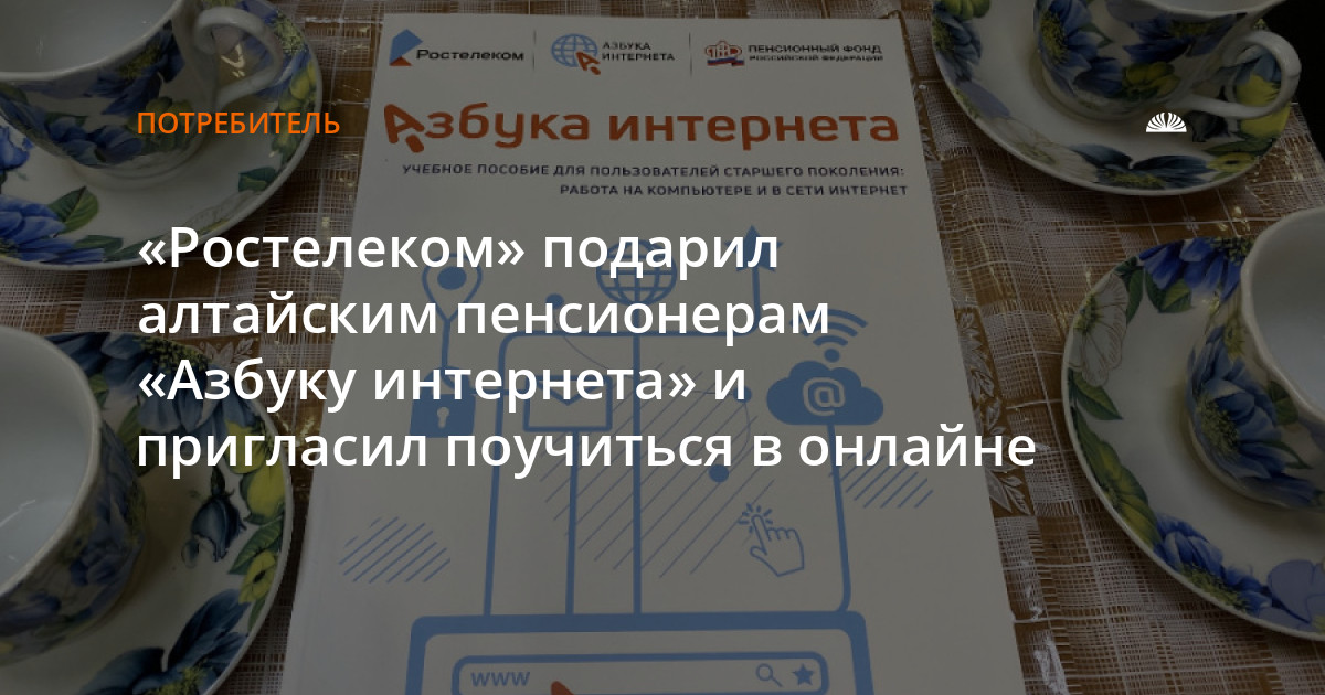 Проект «Азбука интернета» рассчитан на возрастную группу 55+ и состоит из одноименного учебного пособия и интернет-портала азбукаинтернета.рф, на котором размещены учебные материалы и методические рекомендации для преподавателей. В рамках проекта специалисты «Ростелекома» и волонтеры общественных организаций проводят курсы компьютерной грамотности в разных регионах России.