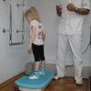 Занятия на поступившем накануне нового года оборудовании, начались в январе. 14 февраля на встрече с представителями компании главный врач Дмитрий Гармат рассказал о его назначении, а врач-невролог высшей категории Дмитрий Паршин с помощью пациентов санатория – восьмилетнего Артема и шестилетней Вики показал, как работают вертикализатор и виброплатформа и как дети с их помощью учатся ходить.