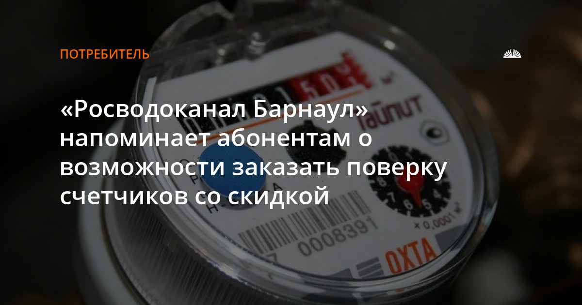«Заказать поверку со скидкой, всего за 500 рублей, можно в приложении ASKeDo. В течение 1-3 дней услуга будет оказана специалистами аккредитованной организации – партнера водоканала. Процедура поверки длится не более получаса, снимать счетчик при этом не нужно», - рассказала коммерческий директор «Росводоканал Барнаул» Татьяна Колганова.