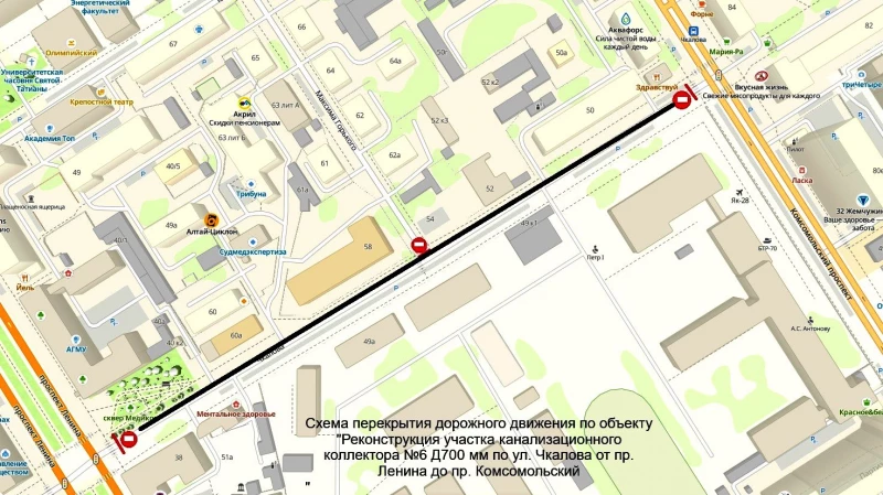 Для проведения работ в период с 16 февраля по 30 апреля будет перекрыто движение транспорта по участку ул. Чкалова от пр. Ленина до пр. Комсомольский.