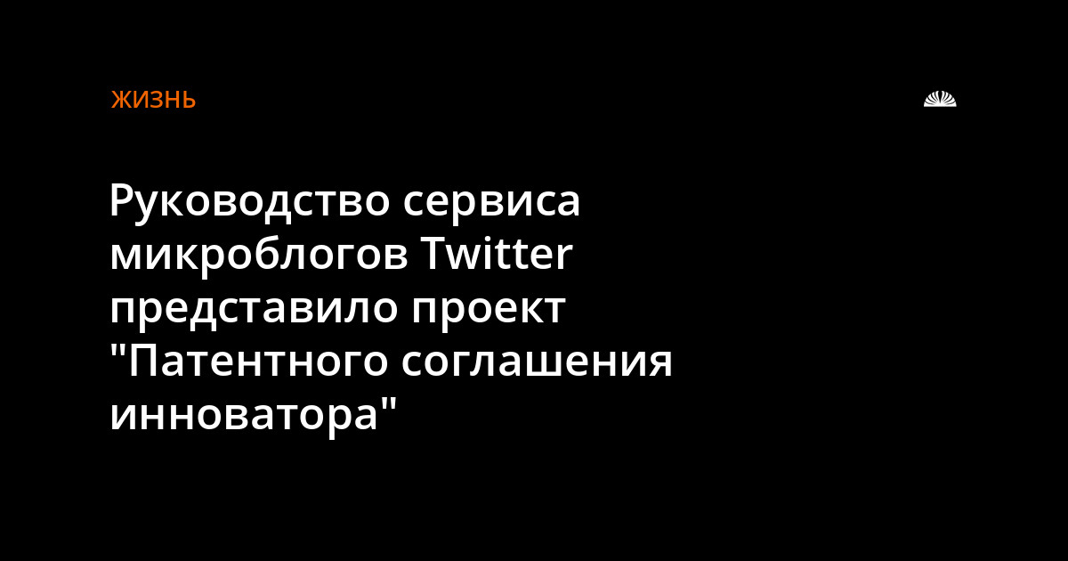 Черновой вариант "Патентного соглашения инноватора" Twitter разместил на сервисе Github. Утвердить окончательную версию документа сервис микроблогов планирует до конца 2012 года. Сразу после этого "Соглашение" вступит в силу.
