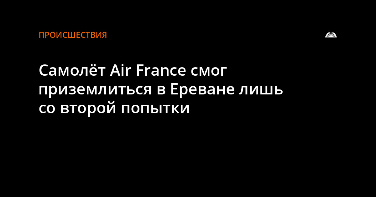 26 июля самолёт Air France смог приземлиться в Ереване лишь со второй попытки. Авиалайнеру не удалось совершить посадку с первого раза, поэтому он приземлился с часовым опозданием, рассказал "Интерфаксу" один из пассажиров рейса Париж-Ереван.