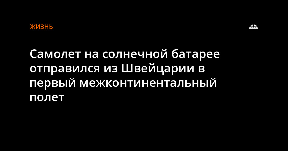 Утром 24 мая из Швейцарии в свой первый межконтинентальный полет отправился самолет Solar Impulse, работающий на солнечной батарее, сообщает швейцарская газета Le Matin.