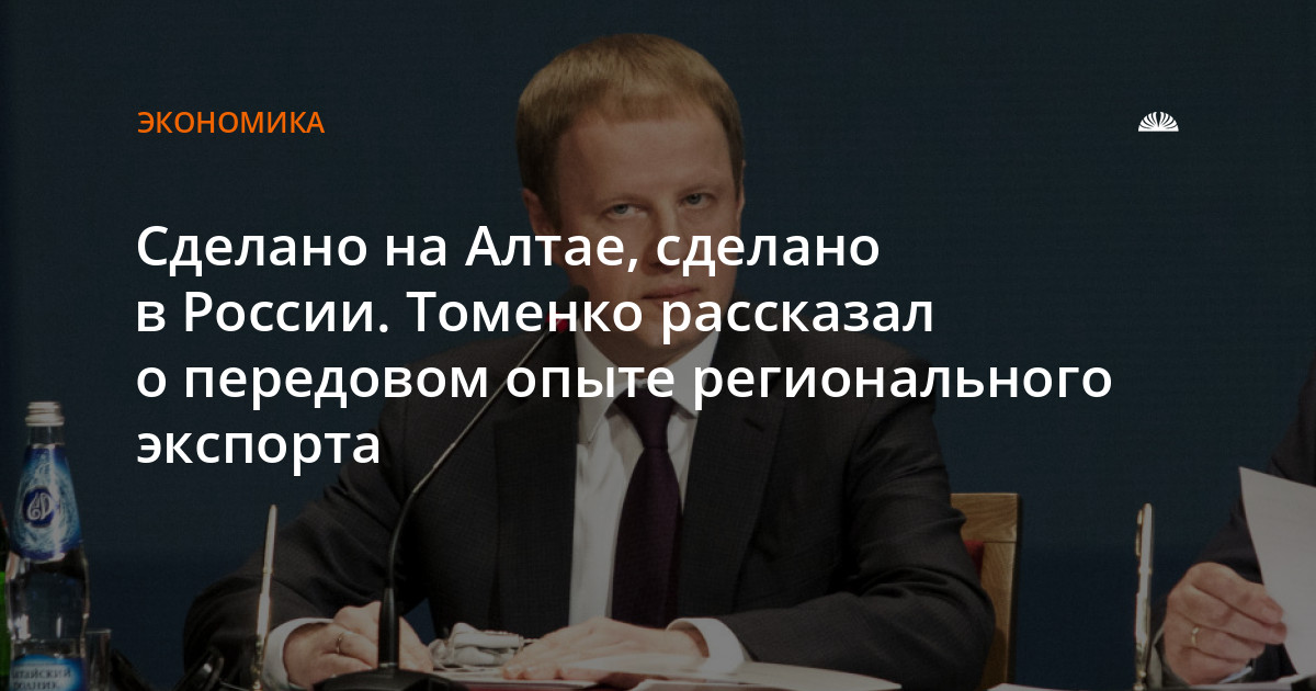 В частности, Виктор Томенко рассказал о лучших практиках Алтайского края по развитию экспорта. Губернатор напомнил, что наш регион является аграрно-индустриальным и имеет выраженную экспортную ориентацию.