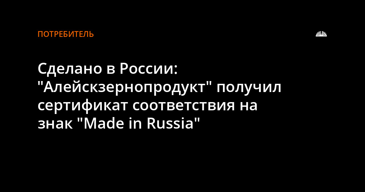 По результатам второго этапа ЗАО "Алейскзернопродукт" им. С.Н. Старовойтова вручен сертификат соответствия на знак "Made in Russia" и право на его размещение на упаковке продукции под ТМ "Алейка" и в маркетинговых материалах. Маркировка "Made in Russia" поможет повысить узнаваемость товаров и брендов на зарубежных рынках.