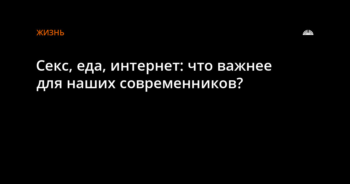 Секс в качестве неотъемлемой части жизни в этом рейтинге фигурирует на 7-м месте, уступая телевизорам, персональным компьютерам, гаджетам и смартфонам.