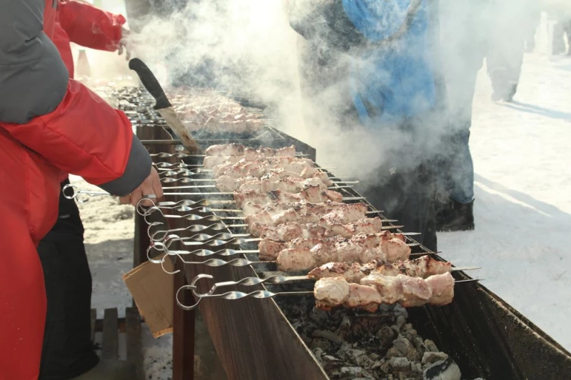 На десятки метров растянулась очередь за сочным шашлыком, приготовленным заслуженными шашлычниками предприятия "Барнаульский пищевик". Пока часть публики наблюдала за сражениями на бревне и лазанием на столб, остальные подкреплялись, как принято, шашлыком. Более полутора тысяч порций (около 350 килограммов) разошлись в течение праздника на площадке, устроенной известной в крае компанией. Каждый час проходили розыгрыши вкусных призов, а также недельных запасов мясной продукции "Барнаульского пищевика".