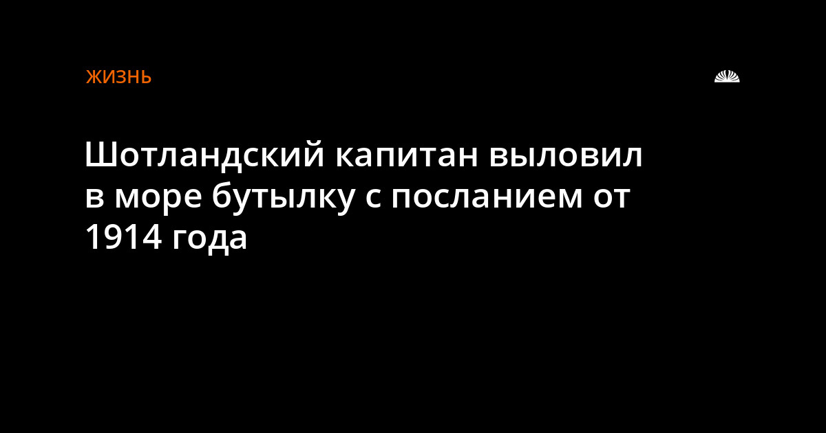 Бутылка была выпущена в море 10 июня 1914 и оказалась одним из 1890 подобных экземпляров, которые были отправлены дрейфовать с целью построения карты течений вокруг Шотландии. Внутри сосуда находилась открытка, в которой капитан Браун из школы навигации в Глазго обещал выплатить награждение в размере 6 британских пенсов тому, кто обнаружит послание. На настоящий момент были найдены всего 315 из запущенных с этой целью бутылок, пишет Газета.ру.