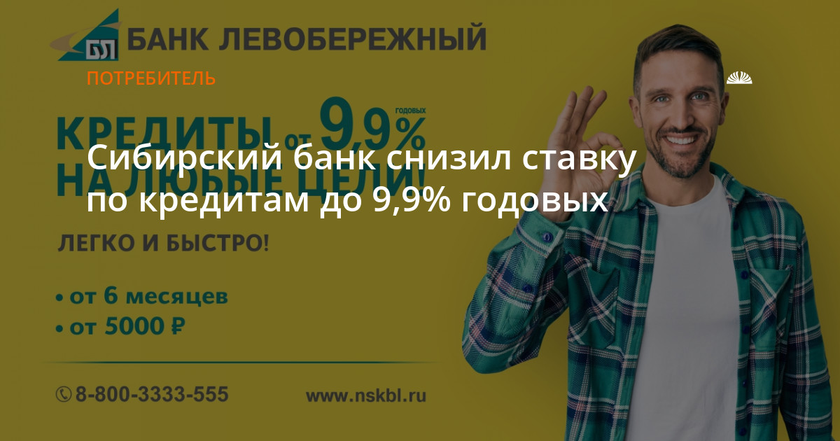 Банк «Левобережный» оставляет за собой право отказать в выдаче кредита, а также в любое время вносить дополнения и/или изменения в условия кредита в одностороннем порядке путем размещения информации на сайте nskbl.ru.