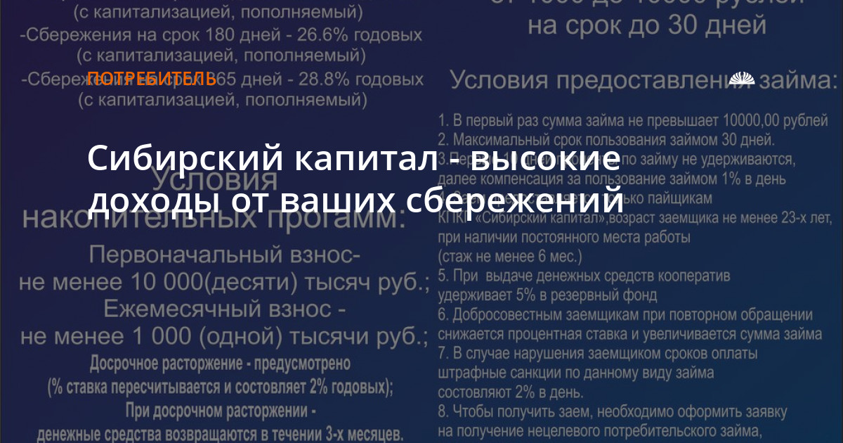 Кооператив "Сибирский Капитал" ГАРАНТИРУЕТ сохранность и возврат денежных средств, переданных в пользование кооператива.