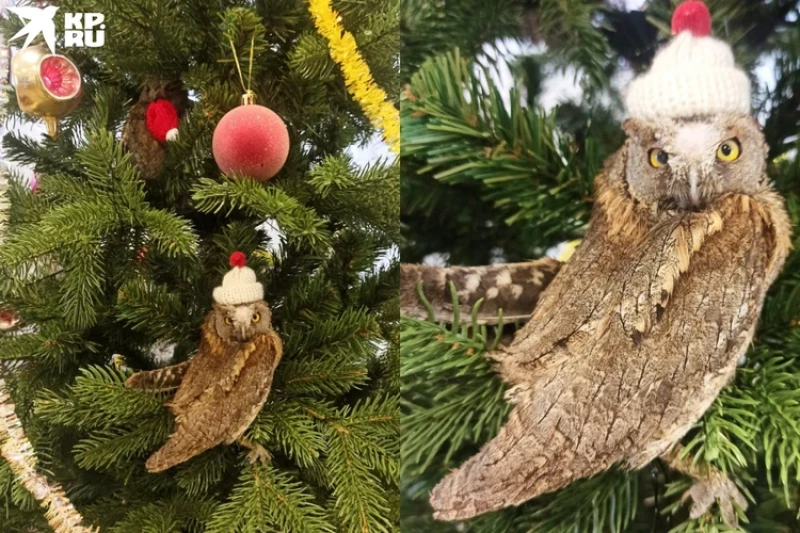 Совушки запрыгивают на новогоднюю елку и скачут.