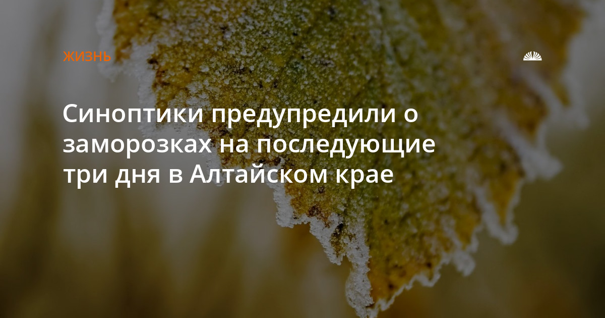 6 сентября в Алтайском крае преимущественно без осадков, утром местами туман. Ветер северо-восточный, днем местами порывы до 15 метров в секунду, сообщается на сайте правительства Алтайского края. Температура ночью +3...+8 градусов, местами заморозки до -2, днем +18...+23 градуса.
