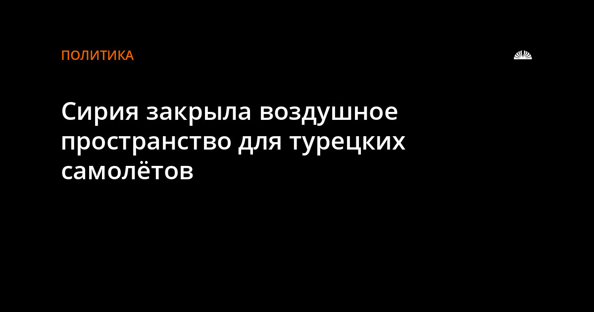 Сирийское министерство иностранных дел официально заявило, что доступ турецких гражданских самолетов в воздушное пространство страны запрещен с 14 октября. Согласно озвученному документу, причиной для такого шага стал арест Турцией груза компонентов для ПВО, которые в Сирию пытался доставить российский пассажирский рейс. Перехват гражданского самолета и изъятие не военного, по версии сирийских властей груза, были расценены сирийскими властями как запрет на полеты в воздушном пространстве Турции, пишет ridus.ru.