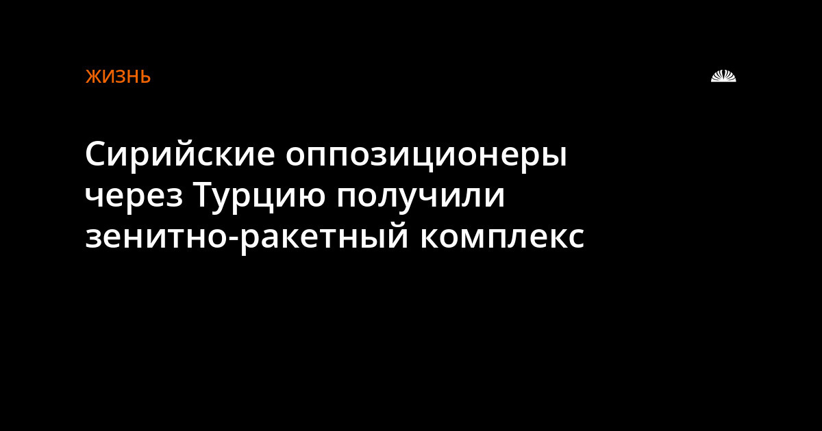 Сирийские вооруженные оппозиционеры впервые получили Переносной зенитно-ракетный комплекс (ПЗРК), сообщает "Интерфакс" со ссылкой на американский телеканал NBC. По данным телеканала, сейчас у вооруженных оппозиционеров более десятка ПЗРК, которые им были доставлены через Турцию. О том, чьего производства эти комплексы, не сообщается. Телеканал отмечает, что все указывает на то, что американская сторона не имеет отношения к поставкам этих комплексов.