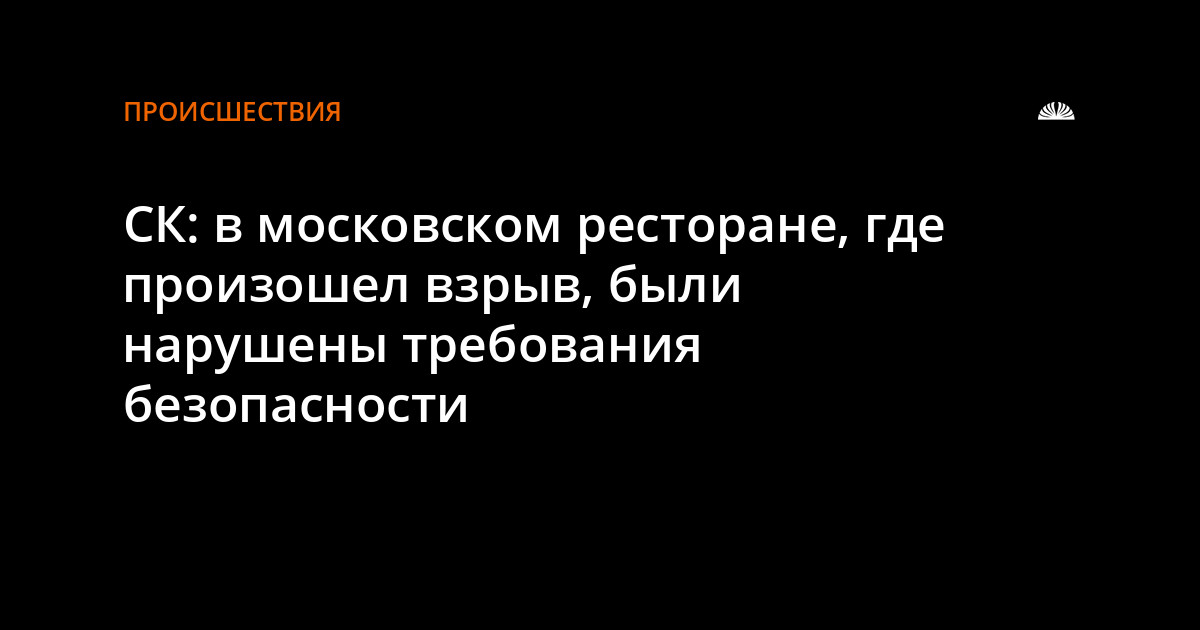 СК: в московском ресторане, где произошел взрыв, были нарушены требования безопасности