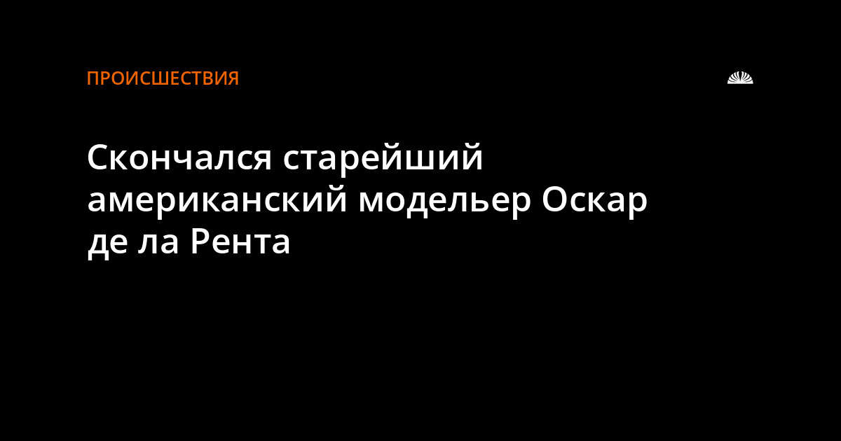 В городе Кент (Коннектикут, США) на 83-м году жизни умер старейший американский модельер Оскар де ла Рента, передает CNN. Причина смерти не называется. Известно, что в 2006 году модельеру был поставлен диагноз рак; в 2013-м он заявил, что полностью излечился.