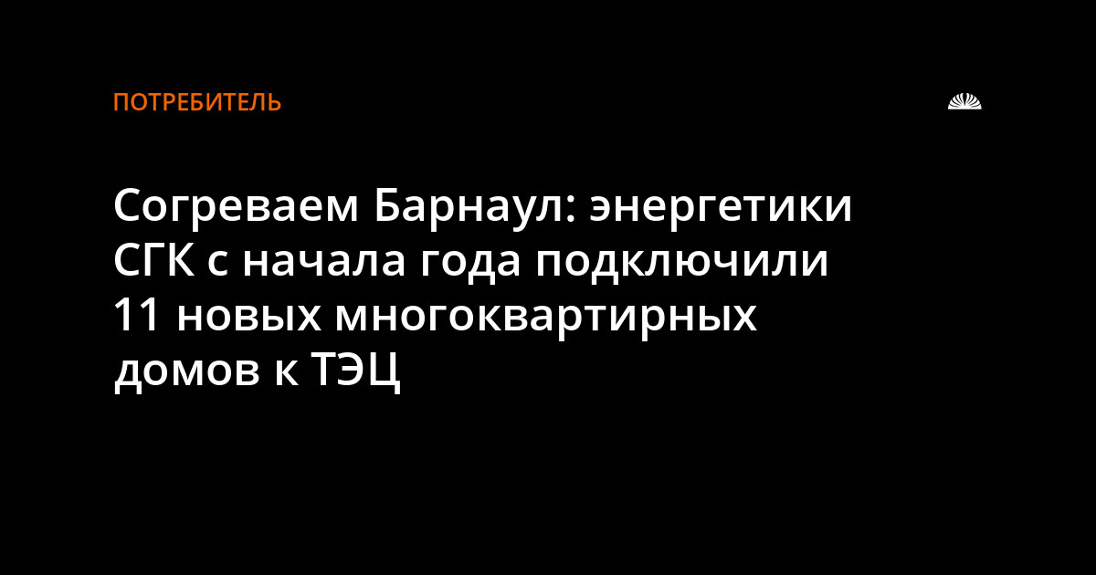 Новыми потребителями СГК в Барнауле также стали многоквартирный 24-этажный жилой дом на улице Взлетной, 38, шестнадцатиэтажки на Гущина, 150/4 и 175, Малахова, 79. В центральной части города к мощностям ТЭЦ подключили дома на улицах Профинтерна, 30Б, Пролетарская, 165 и 150, Папанинцев, 119, Крупская, 124. Полным ходом ведутся работы по подключению жилых домов на улицах Балтийская,99 и Песчаная,19.