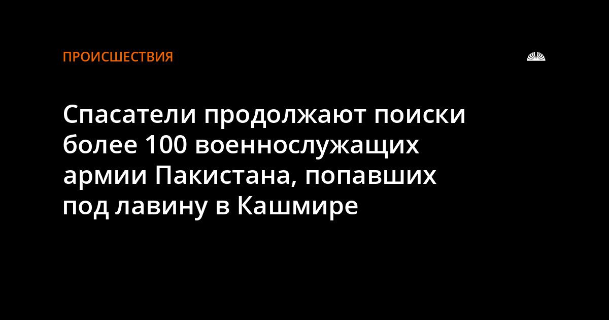 Более 100 солдат пехотного полка, в том числе полковник, попали под лавину, накрывшую военный лагерь. Инцидент произошел вблизи ледника Сиачен в восточной части горной системы Каракорум.