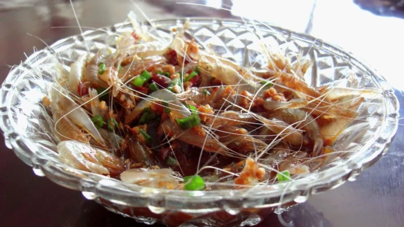 Около одной минуты жарьте на оливковом масле тонко нарезанный чеснок с красным, черным и белым перцем. Добавьте немного белого вина и потушите еще минуту. Высыпьте креветки, хорошо перемешайте, выключите огонь и дайте настояться под крышкой.