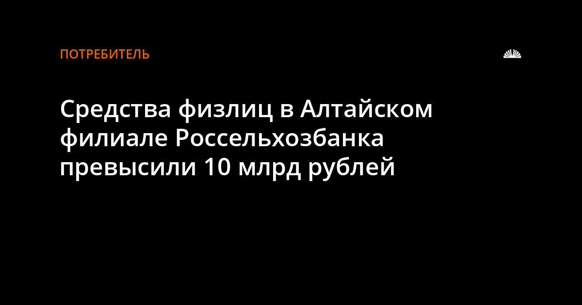 В 2016 году в филиале Россельхозбанка в Алтайском крае было открыто более 13 тысяч новых вкладов на сумму 1,55 млрд рублей. При этом общее количество депозитов физических лиц превысило 68 тысяч. Остаток на текущих счетах по итогам года составляет около 700 млн рублей. Клиентская база возросла до 195 тысяч человек.