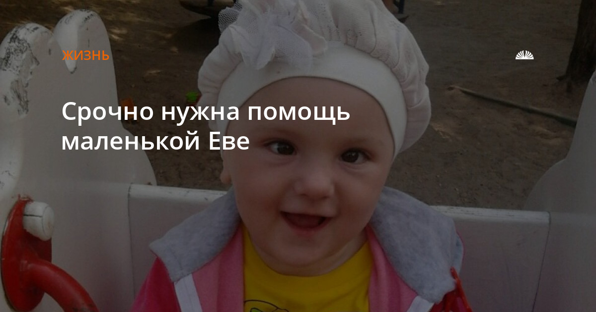 Ева очень жизнерадостный ребенок, умеет переворачиваться со спины на животик и обратно, умеет топать, если ее держать под ручки. Любит наблюдать за детьми на детской площадке и кататься на лошадях. Но в свои 2 года она существенно отличается от своих сверстников. Если малыши в этом возрасте уже вовсю ходят, разговаривают, играют игрушками, то развитие Евы пока на уровне годовалого ребенка. Эта маленькая девочка совсем не знает, что мы с вами тут затеяли сбор ради нее. Она не понимает, какая опасность над ней нависла. Она начнет это понимать, когда все сверстники побегут, поедут на велосипедах, будут прыгать в классики, а Ева не сможет побежать за ними. Очень важно получить нужную реабилитацию, а еще важнее получить ее вовремя, чтобы не отбросить все старания и успехи назад. Вот сейчас, именно сейчас, в этом возрасте у нее есть все шансы догнать сверстников и расти обычной девочкой. Есть очень хорошая фраза: "Это не его вина, это его беда". А в беде помогают.