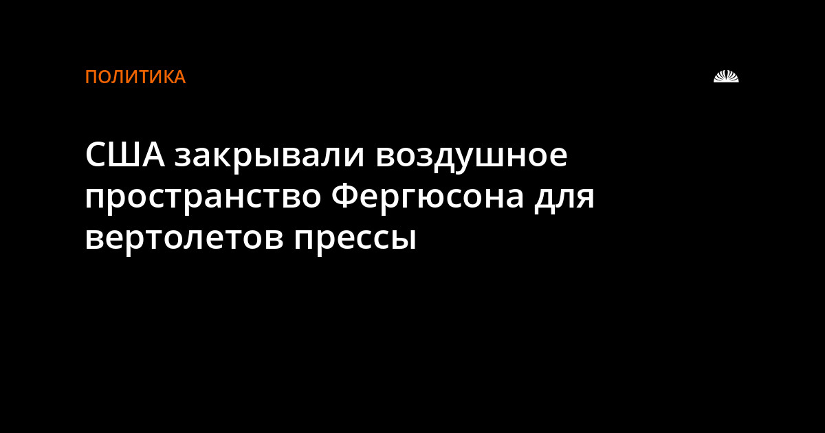 В августе этого года власти Соединенных Штатов закрыли воздушное пространство на Фергюсоном (штат Миссури), для того, чтобы не дать журналистам освещать протесты и митинги, которые проводились гражданами после того, как американский полицейский застрелил 18-летнего афроамериканца Майкла Брауна. Об этом в воскресенье сообщили американские СМИ.