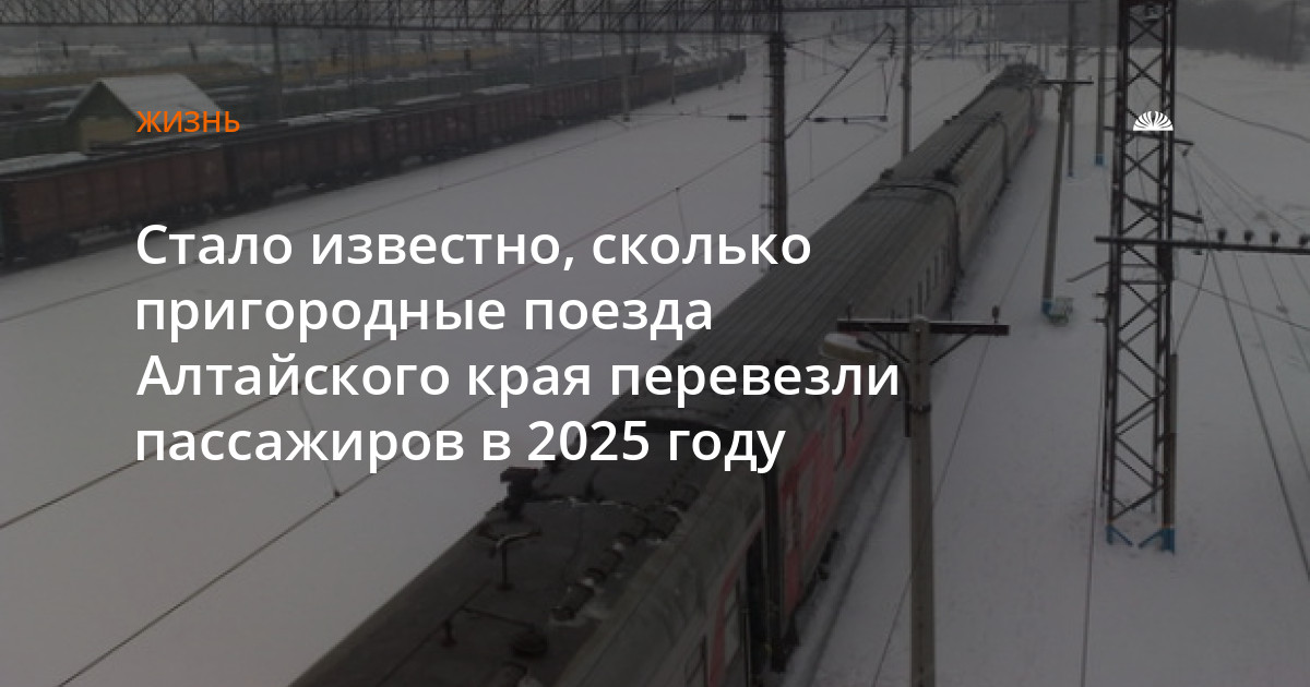 В 2025 году скорые пригородные поезда «Калина Красная», «Восток», «Просторы Алтая» и «Степной экспресс» перевезли в Алтайском крае свыше 1 млн пассажиров. Этот показатель на 17,3% выше, чем в 2024 году.
