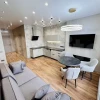 В одной из двух спален есть кинотеатр Орtоmа с экраном, есть теплые полы в санузлах и на лоджии. В трешке также есть два кондиционера, высота потолков — 2,85 м. Вся мебель и техника достанутся новому владельцу.