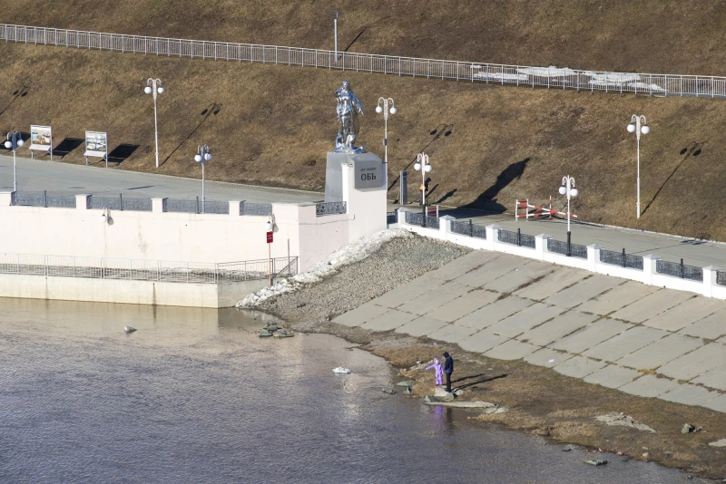 Утром 9 апреля месиво льдинок проносилось мимо набережной. За ними впервые «наблюдал» арт-объект Обь, который установили в прошлом году.