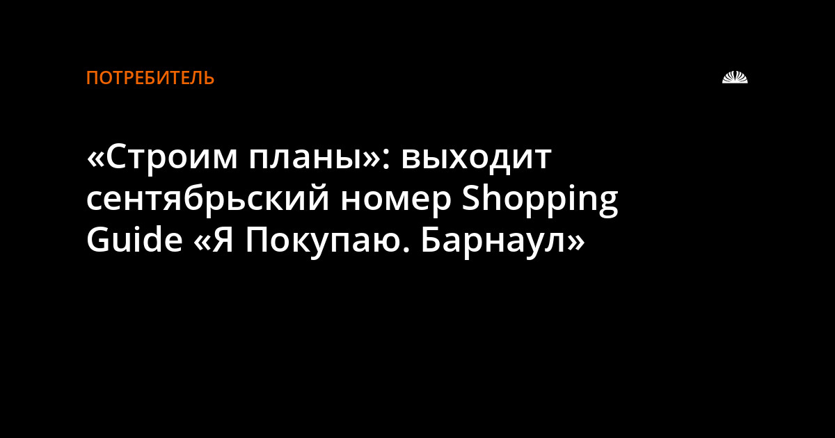 Тема номера Shopping Guide «Я Покупаю. Барнаул» в сентябре — «Строим планы». Итак, собираемся на сентябрьскую планерку. На повестке дня: