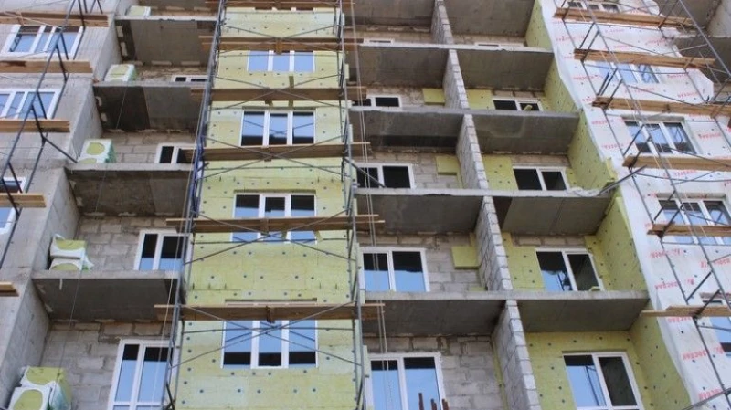На стройплощадке завершилось остекление первых двух блок-секций, на последней, седьмой блок-секции, закончено возведение монолитного каркаса.