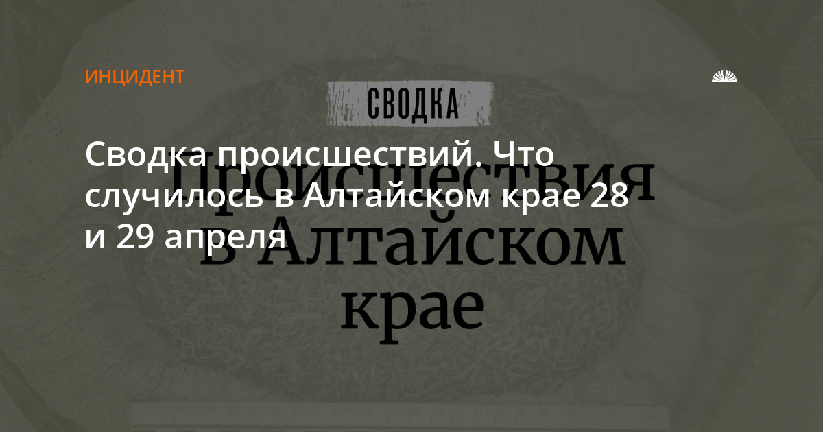 - В Рубцовском районе потушили крупный природный пожар на площади 1,5 тыс. кв. метров. Причина — неосторожное обращение с огнём.