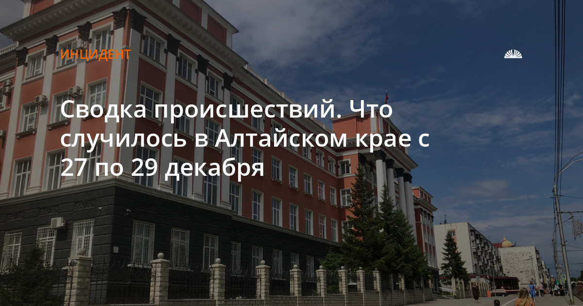 Сводка происшествий. Что случилось в Алтайском крае с 27 по 29 декабря