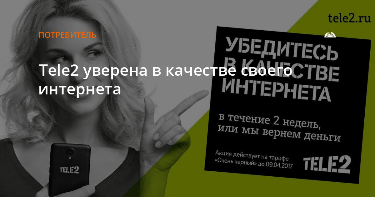 Новые абоненты компании, которые подключатся к тарифному плану "Очень черный" в салонах связи и фирменных модулях Tele2, смогут в течение 15 дней протестировать качество скоростного мобильного интернета оператора. Если клиентов не удовлетворит скорость передачи данных или покрытие сетей 3G/4G, Tele2 вернет им средства в размере оплаченной абонентской платы. Для этого пользователю необходимо прийти в салон связи Tele2 в своем регионе и заполнить короткую анкету.