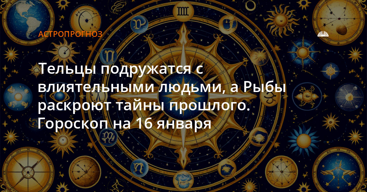 Тельцы подружатся с влиятельными людьми, а Рыбы раскроют тайны прошлого. Гороскоп на 16 января