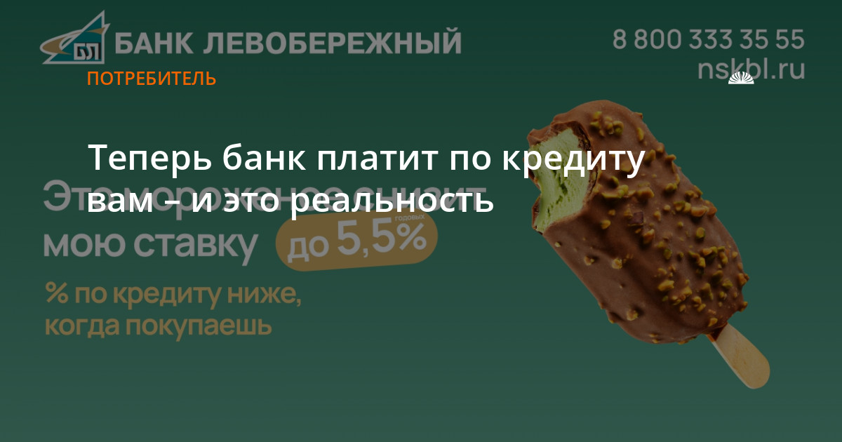 Срок кредита – 12, 24, 36, 48, 60 месяцев. Цель кредита – потребительские цели (рефинансирование кредитных обязательств в иных банках, иные цели, не связанные с осуществлением предпринимательской деятельности). Ставка – от 5,5% до 19,5% годовых, определяется для каждого Заемщика индивидуально с учетом суммы кредита, страхования его жизни и здоровья (далее – Договор страхования), достижения пороговых значений безналичного расходования в ТСП по всем дебетовым картам Банка «Левобережный». Плата за присоединение к Договору страхования погашается Заемщиком ежемесячно в дату платежа в соответствии с Графиком погашения кредитных обязательств. Кредитный продукт содержит иные условия, не влияющие на полную стоимость кредита. Подробнее на NSKBL.RU. Банк «Левобережный» оставляет за собой право отказать в выдаче кредита, а также в любое время вносить дополнения и/или изменения в условия кредита в одностороннем порядке путем размещения информации на сайте. Банк «Левобережный» (ПАО). Лицензия Банка России №1343.