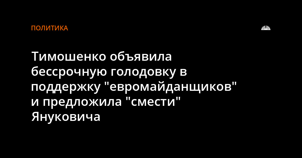 Заявление Тимошенко Сергей Власенко зачитал перед сторонниками евроинтергации, которые собрались на Европейской площади Киева. "Я объявляю бессрочную голодовку с требованием к Януковичу подписать соглашение об ассоциации и зоне свободной торговли с Европейским союзом", — процитировал адвокат слова политика.