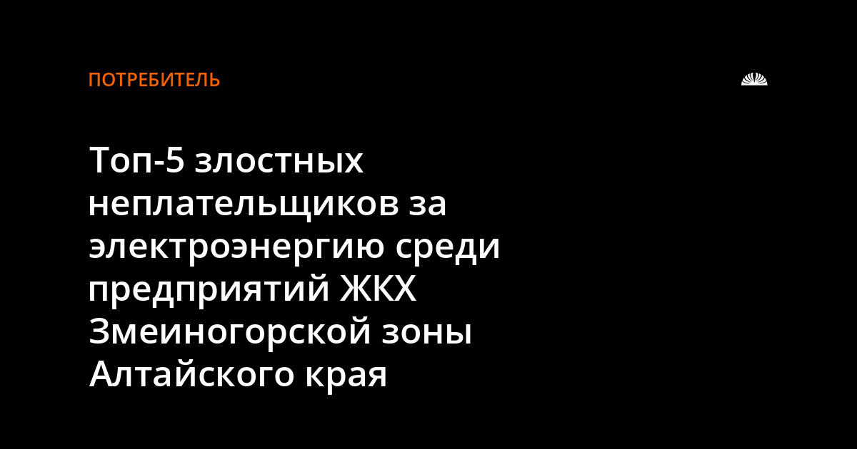 Полный список ТОП-5 злостных неплательщиков за электроэнергию сферы ЖКХ Змеиногорской зоны Алтайского края: