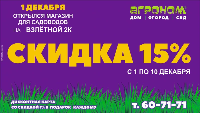 До 10 декабря посетителей ждут скидки 15% на весь ассортимент и презентация новых товаров для садоводов. Купить Чудотеплицу вы сможете также со скидкой.