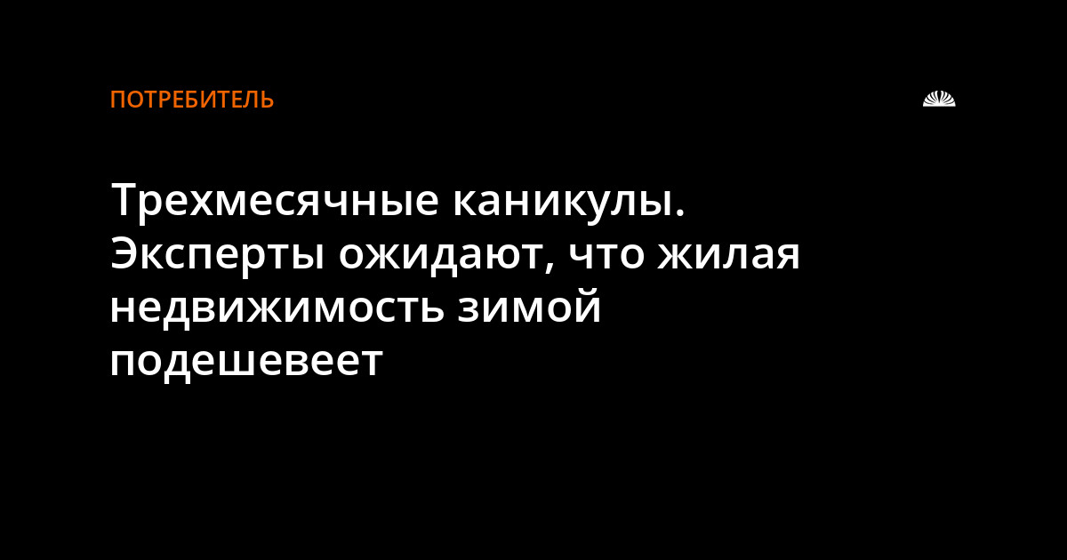 Трехмесячные каникулы. Эксперты ожидают, что жилая недвижимость зимой подешевеет