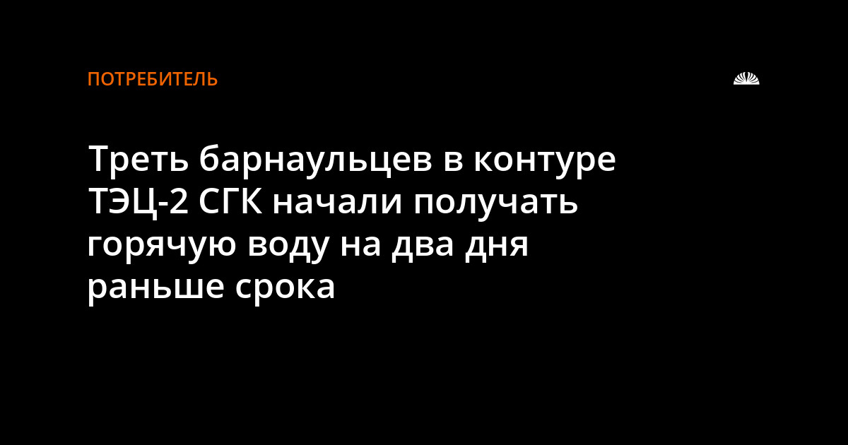 Треть барнаульцев в контуре ТЭЦ-2 СГК начали получать горячую воду на два дня раньше срока
